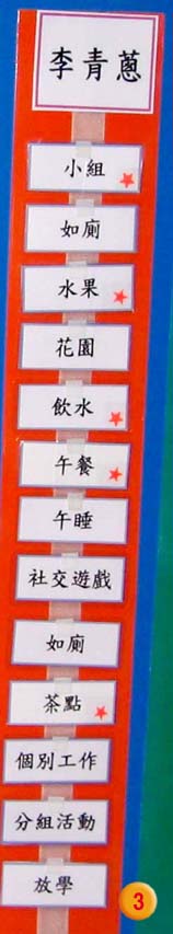 時間表就是以兒童能夠明白的視覺形式,如:實物、相片、文字等,告訴兒童不同時段的生活程序。 在這光碟中,除了展示使用不同物料變化成不同形式的視覺提示例子外,也展示一些凸顯時間表的形式,和兒童使用時間表時的運作,包括:如何尋找時間表、找到自己的時間表後,如何處理時間表活動咭。